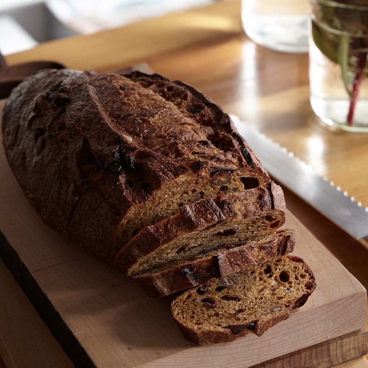 A moist sourdough bread enhanced with pumpkin purée, tart cranberries, and warm spices. Delicious as an hors d’oeuvres, sliced thin, with a spread of ripe Camembert or creamy Stilton. Feeling adventurous? Use it as a base for this year’s Thanksgiving stuffing.