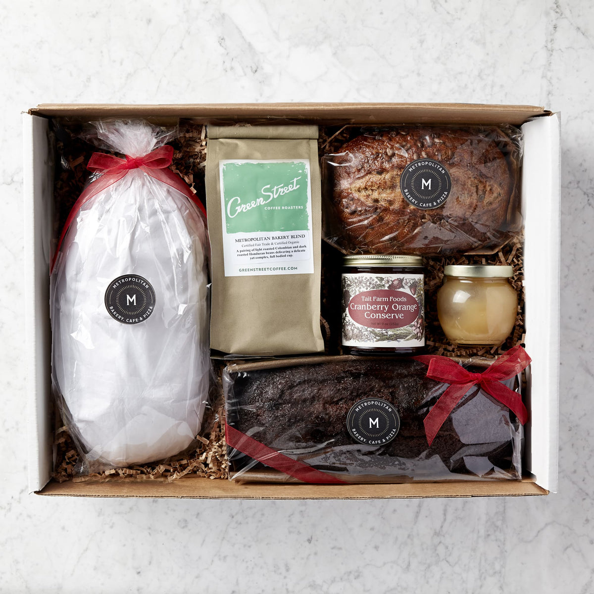Delight loved ones with a delicious selection of our favorite holiday breakfast treats. Whether it's a slice of our Stollen or Gingerbread Pound cake, smooth Green Street coffee, or local honey and jam, our Holiday Breakfast Box is filled to the brim with the fixings for an unforgettable brunch celebration or holiday breakfast in bed.